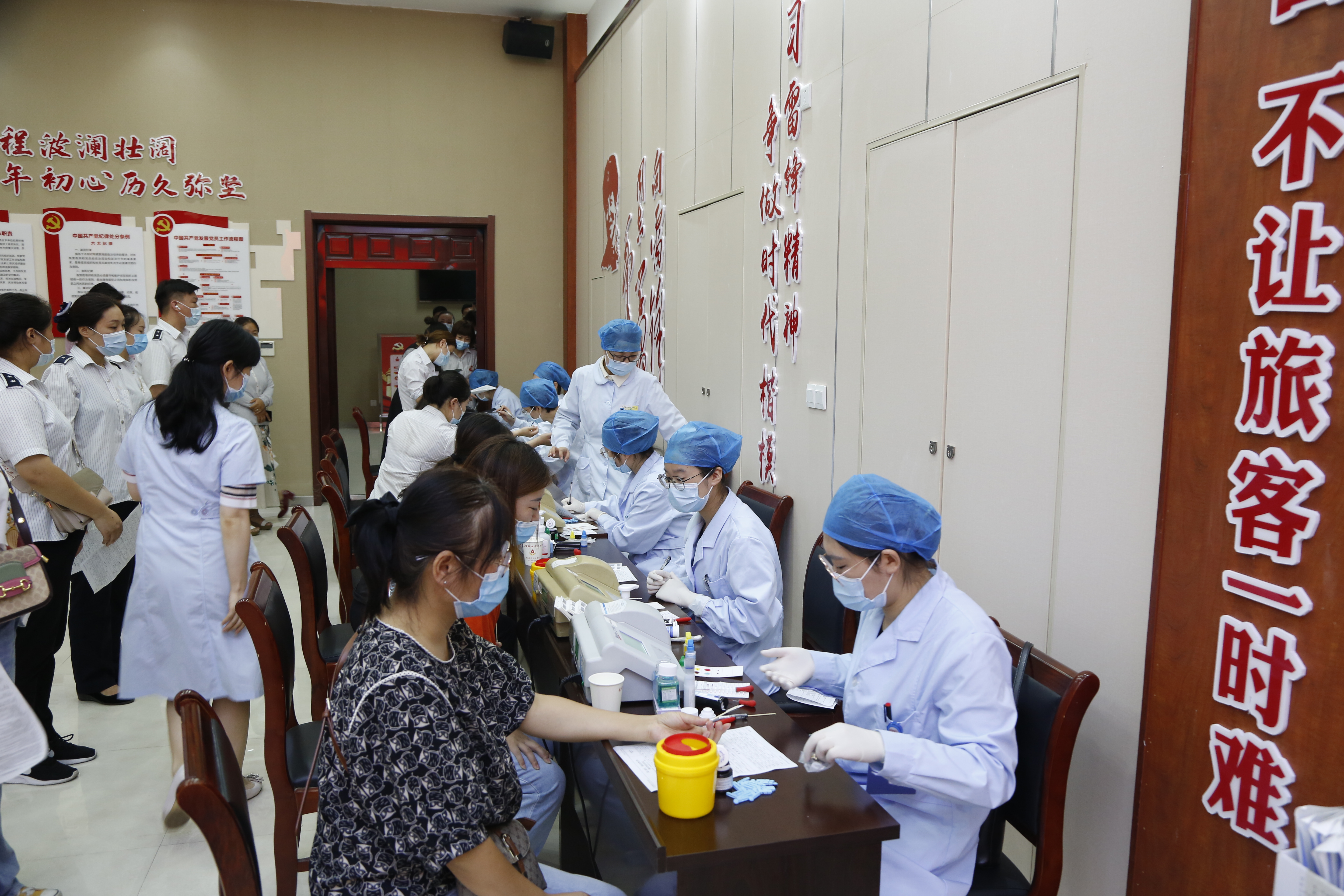 疫情防控特殊时期,为避免献血者聚集,千亿app最新版下载,千亿(中国)采取分时段错峰献血,充分做好采血和献血人员的防护。活动现场,参加献血的干部职工全程佩戴口罩,保持安全距离,在医护人员的引导下,依次仔细做好无偿献血的登记工作,进行血液初筛和采血,过程井然有序。献血队伍中,既有第一次献血的“热血青年”,也有连续多年参加的“献血达人”; 既有闻名全国的先进典型“雷锋车组”,也有与“雷锋车”同行的党员的士、雷锋的士,海小欧志愿服务队等团队。经过严格检查筛选,千亿app最新版下载,千亿(中国)第一批90名人员成功献血,总献血量达14900毫升。