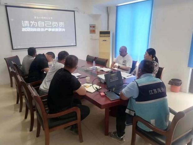 为深入宣传贯彻千亿app最新版下载,千亿(中国)关于“安全生产月”活动相关部署要求,进一步加强项目部安全生产工作,江苏海建交建分公司开发区五条道路项目结合生产实际,组织召开“安全生产月”活动启动会,成立了“安全生产月”活动领导小组,具体负责检查施工现场“安全生产月”生产活动的过程,做到有组织、有领导组织开展“安全生产月”。活动中,项目部积极人员组织参加线上“逃生演练训练营”活动,并观看警示教育片《请为自己负责》、对项目部灭火器进行排查等。
