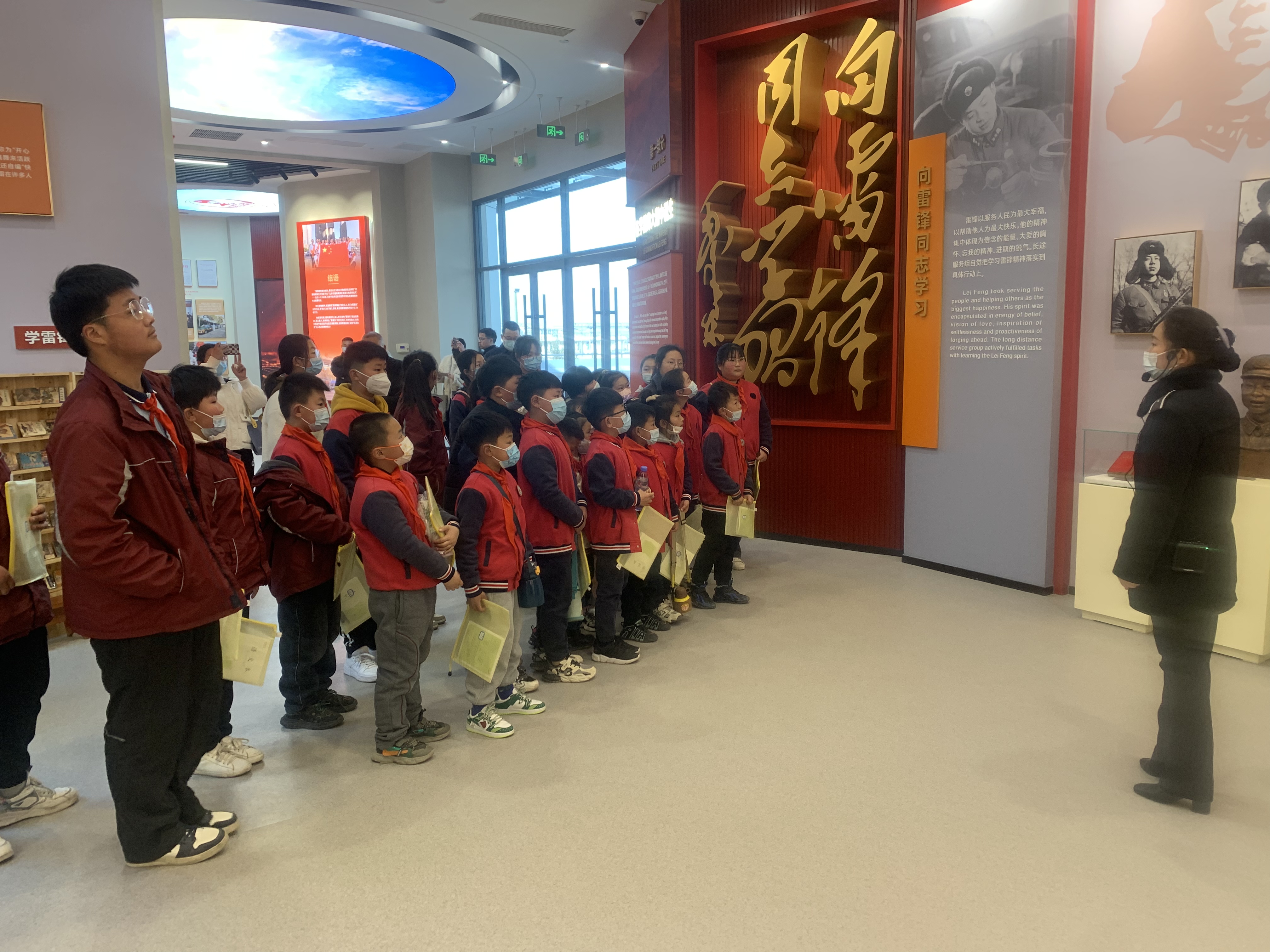 活动中,班庄小学的师生们参观了改建后的“雷锋车”事迹陈列馆。同学们对“雷锋车”组的事迹非常感兴趣,不时拿出本子做记录,还问了许多关于“雷锋车”的问题。在随后的共建活动上,班庄小学的老师和学生代表分别进行了诗歌朗诵、红色故事宣讲,“雷锋车”手代表向班庄中心小学赠送了“雷锋车”班的牌匾和雷锋车纪念图书。