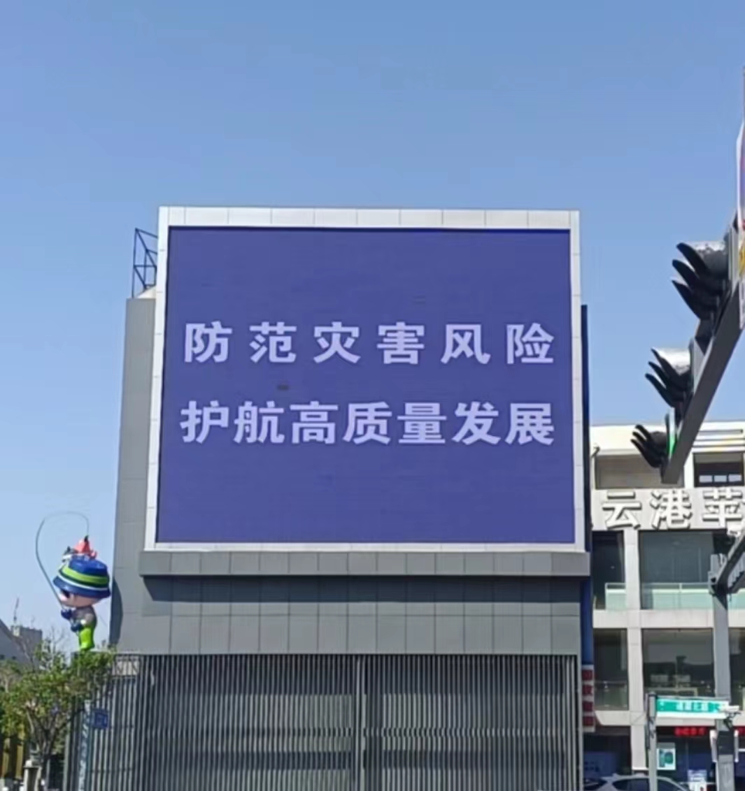 海鸥广场位于我市中心地段且人员汇集,周边多有安全隐患高发的娱乐场所及商业空间。此次公益广告上刊点位于海鸥广场东侧电子大屏,以“防范灾害风险 护航高质量发展”为核心主题,以醒目字体宣传本次公益口号,同时在大屏全天候滚动播放30秒“火灾急救”主题公益教育视频,对来往的市民进行防灾救援知识的普及推广,让每个人都能在灾害来临的关键时刻做到“不慌乱、保安全”。