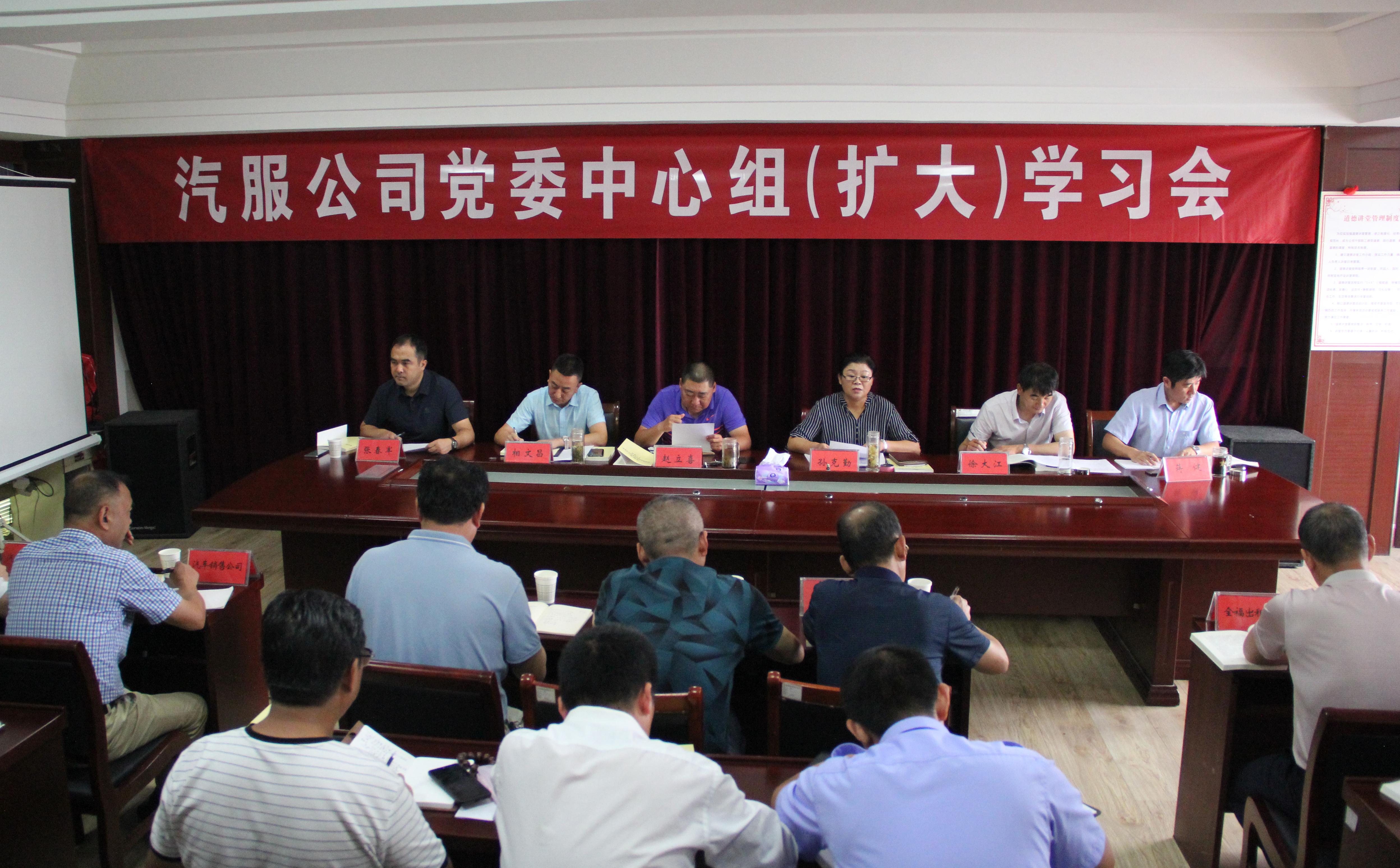 8月14日上午,海通汽服公司党委召开中心组(扩大)学习会,各权属企业领导班子成员及机关处室负责人参加会议。会议邀请千亿app最新版下载,千亿(中国)纪检组长徐大江同志出席学习会。公司党委委员相文昌同志领学《习近平新时代中国特色社会主义思想学习纲要》“关于新时代坚持和发展中国特色社会主义的政治保证”中的内容。与会人员手持读本认真学习,认真记录,会议气氛认真而又严肃。