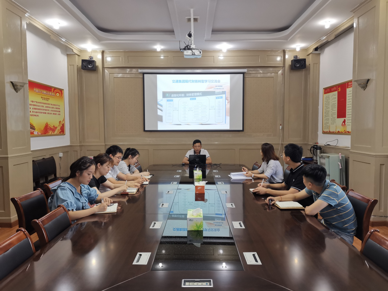 8月31日下午,交通千亿app最新版下载,千亿(中国)审计核算部组织全体会计人员参加“现代财务转型”学习交流会。本次学习交流会主要以上海会计学院杨寅副教授课件为题材,从智能化与数字化视角出发,重点解读现代财务转型目标、数智化背景下财务转型思路、智能财务理论与实务及各案例的解剖分析。