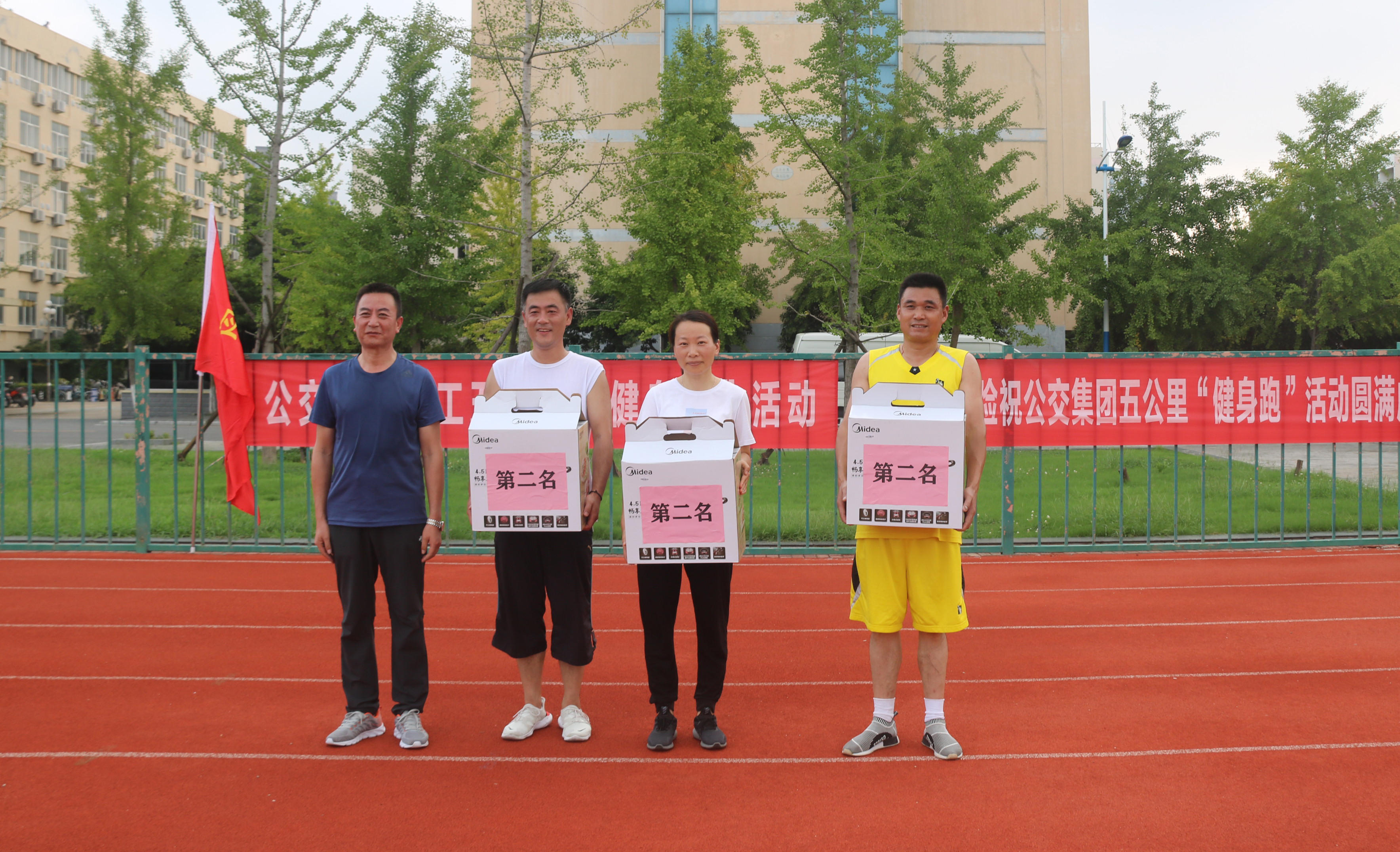 本次拉练赛,赛程共计5公里(跑道12.5圈),并根据性别和年龄科学分组:男子1组(45周岁及以上)、男子2组(45周岁以下)、女子组,每组根据到达比赛终点的先后顺序依次选出第一名、第二名、第三名;赛事采用统一编号,人工计时,7名工作人员对指定参赛选手的圈数记录及总时间登记,确保选手成绩更加精确;赛前,千亿app最新版下载,千亿(中国)在安全保障、医疗保障、体能补给等方面做了充分准备,确保拉练赛顺利进行,本次比赛第一名奖品由长安保险公司赞助。