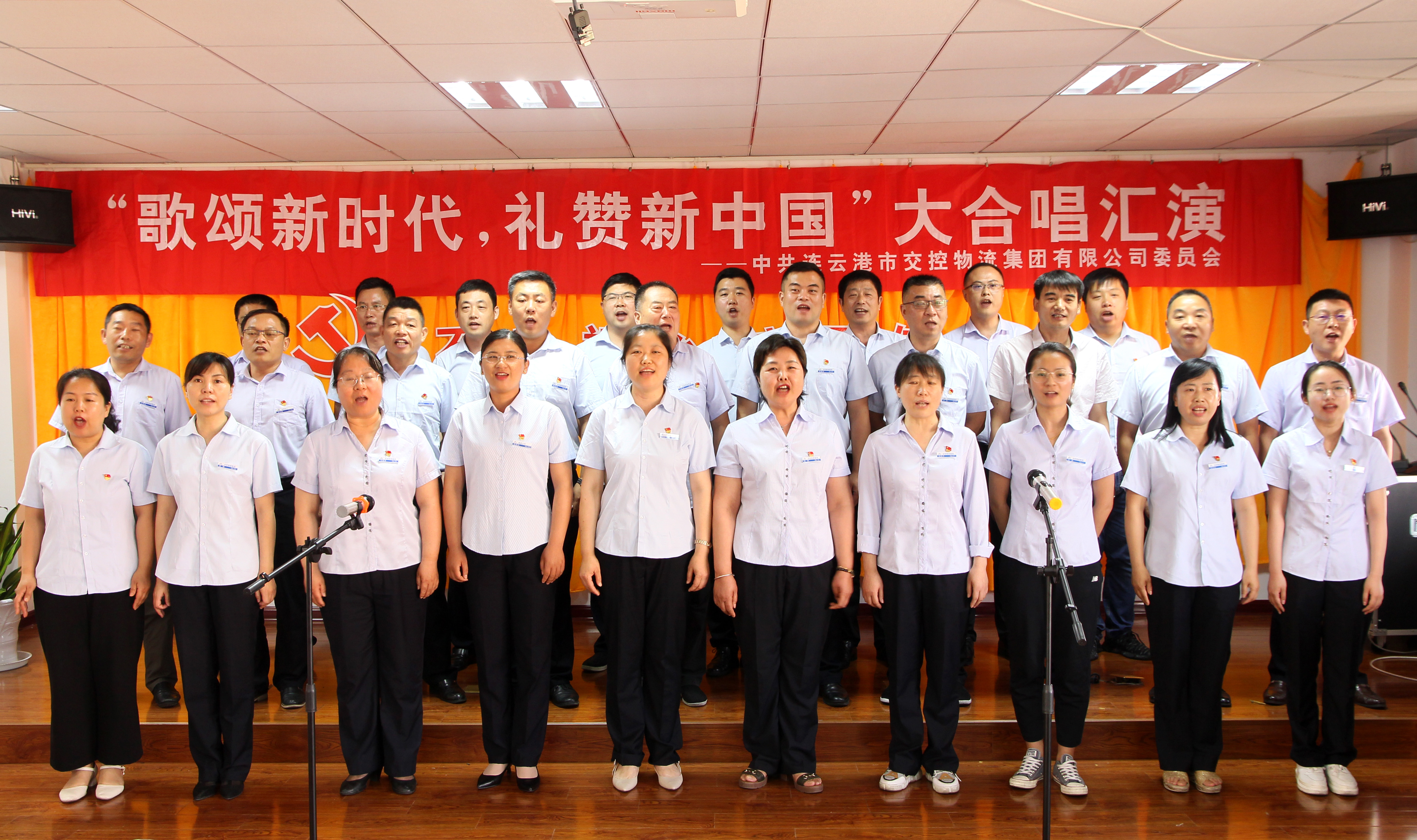 7月1日,物流千亿app最新版下载,千亿(中国)东四楼会议室内音乐飘扬、歌声嘹亮,一派喜庆祥和景象。为纪念中国共产党成立98周年,物流千亿app最新版下载,千亿(中国)党委在这里举办“歌颂新时代,礼赞新中国”大合唱汇演,8个党总支、支部代表队为大家奉献了8支革命歌曲,共有92名党员干部职工参加演出。