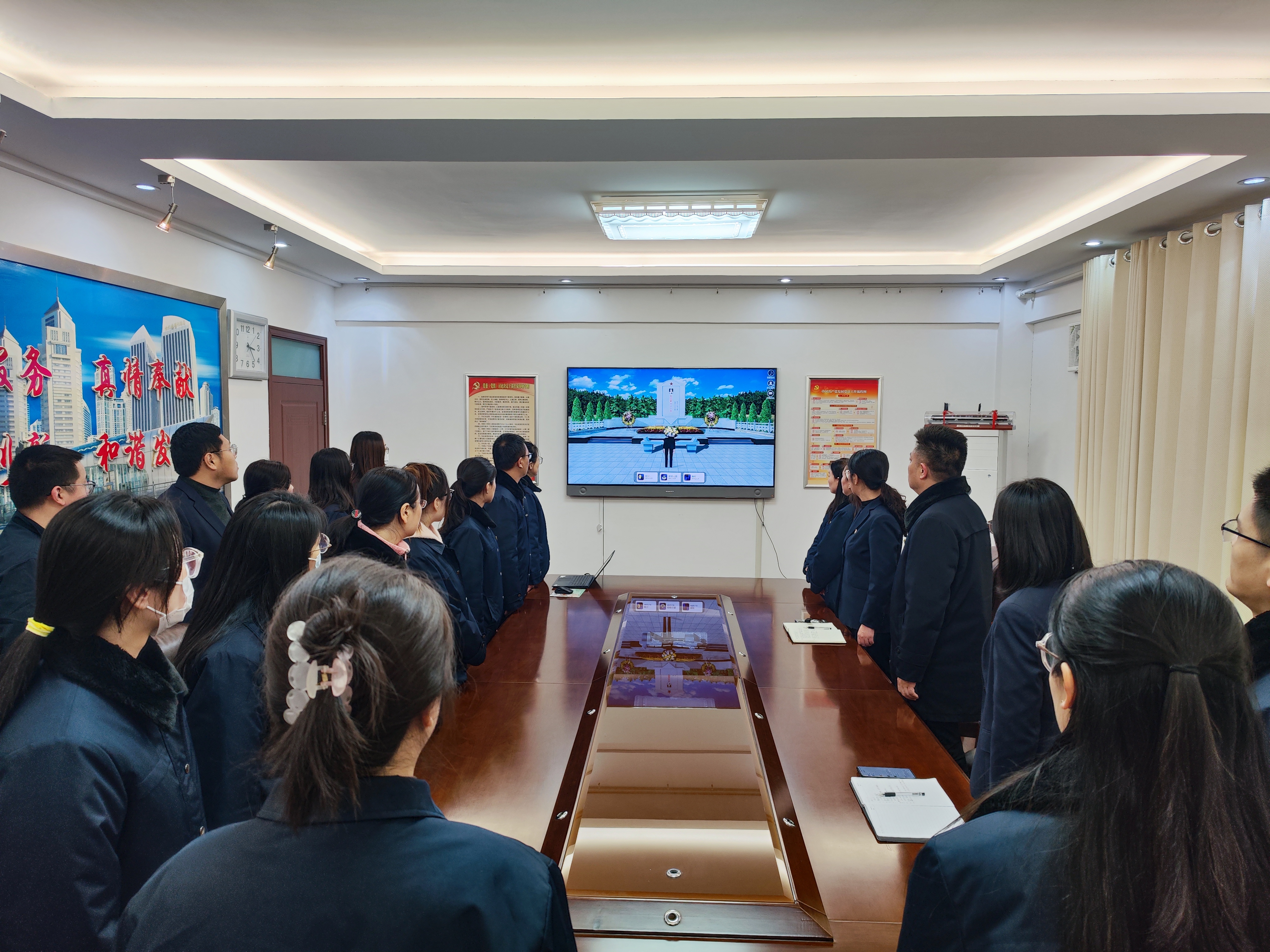 组织党员干部职工登录中华英烈网,通过点击献花、鞠躬、留言等方式进行网上祭扫,大家满怀敬意地向为民族解放、人民幸福献出宝贵生命的烈士鞠躬默哀,深切表达了对革命英烈的敬仰和追思。