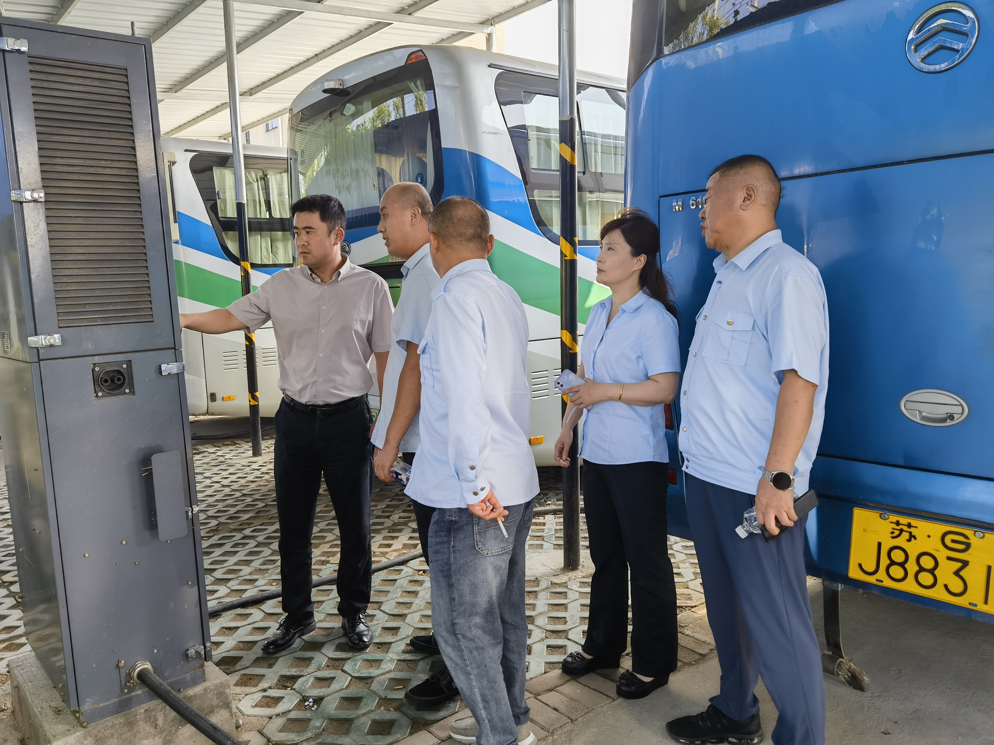 党支部副书记、副经理(主持工作)吴祥瑜带领班子成员、安管人员成立了专项检查小组,按照“全覆盖、零容忍、重实效”的总体要求,开展了全方位、多角度的安全生产大检查。一行人先后实地查看了徐圩客运场站、各办公室、虹港、徐圩湖停车场、人才公寓、邻里中心驾驶员宿舍区等区域,检查项目包括:场站消防设施配备、办公场所及驾驶员宿舍用水用电情况、车辆电池仓发动机仓、轮胎、应急门、随车灭火器、安全锤等安全设施设备性能是否良好、线路牌及各类安全标识是否清晰无缺失。检查过程中,吴经理现场询问了各场区内车辆停放情况、人员分布情况、并对夏季高温天气电动车充电、充电桩使用情况跟驾驶员、管理人员进行了面对面交流,切实解决了实际工作中存在的一些困难。