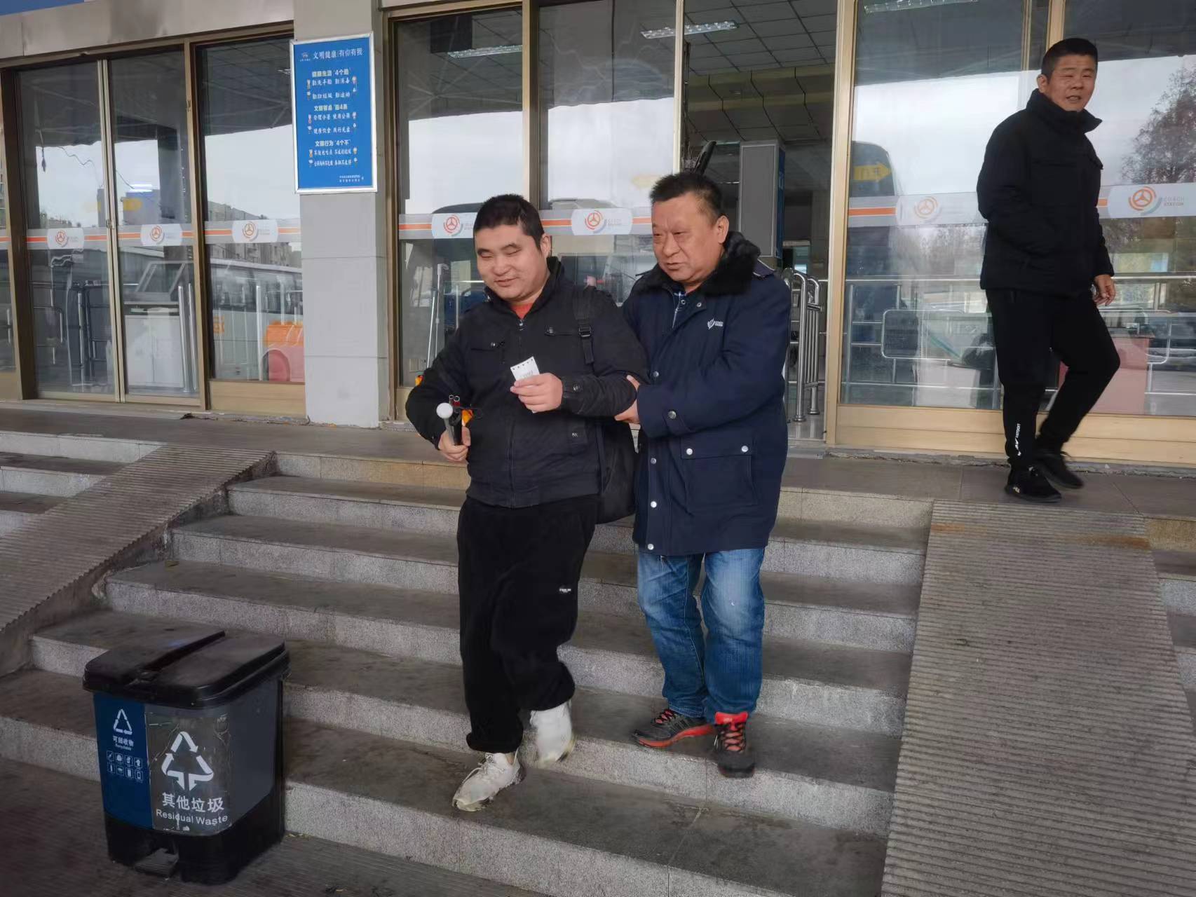 近日,苏欣快客站售票厅进来了一名特殊的旅客,他走路小心翼翼,眼睛半眯半睁,似乎看不清眼前东西。见此情景,当班工作人员胡士杰赶忙上前扶住他,询问他情况,并告知他有什么需求苏欣快客站可以提供帮助。经过了解得知,他视力严重低下,属于半盲状态,灌南人,因个人原因需要往来海州和灌南之间,但由于视力低下,导致来往途中免不了有很多困难。知道情况后,胡士杰立刻与当班其他人员进行了工作协调,自己全程带着这名旅客进行了购票、安检、检票、上车等程序,并交待驾驶员在路途当中以及到灌南后给予帮助。旅客上车坐定后,感动地说,雷锋车站名不虚传,苏欣快客站职工都是活雷锋!