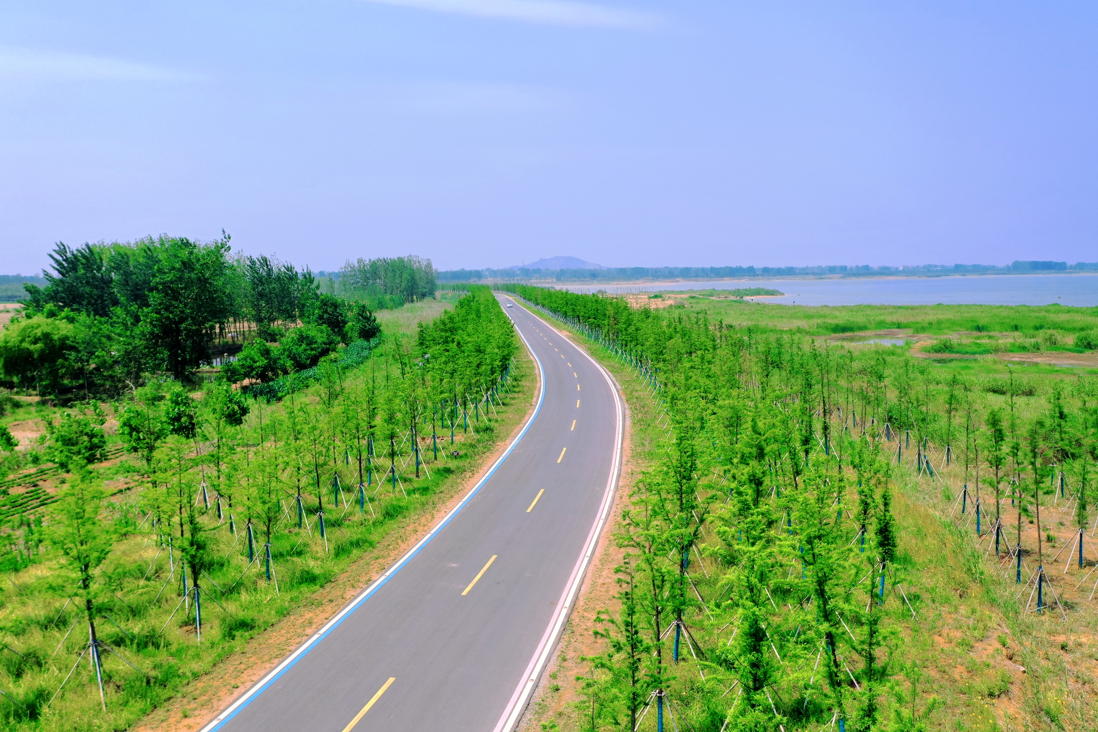 环湖路是石梁河水库生态修复一期工程的重要组成部分,全线贯通的环湖路,成功串联了沿线36个村庄,实现了村村通达、村村受益。这样一条路,过硬的工程质量、超高的施工效率、全面的管护措施只是其基本属性,美丽才是它的最鲜明特色。千亿app最新版下载,千亿(中国)以环湖路沿线为基础向外延伸,完成了380万平方米的生态复绿,沿路行驶,前有夜光道钉,上有鸥鹭翔集,旁有牛羊漫步,近有草木丰茂,远有粼波澄澈……兼具道路美、风景美、生态美、多元美、发展美的环湖路,达成了“一步一景”、“路在景中”、“景即是路”的美好和谐氛围,已成为短途游的“网红”道路。