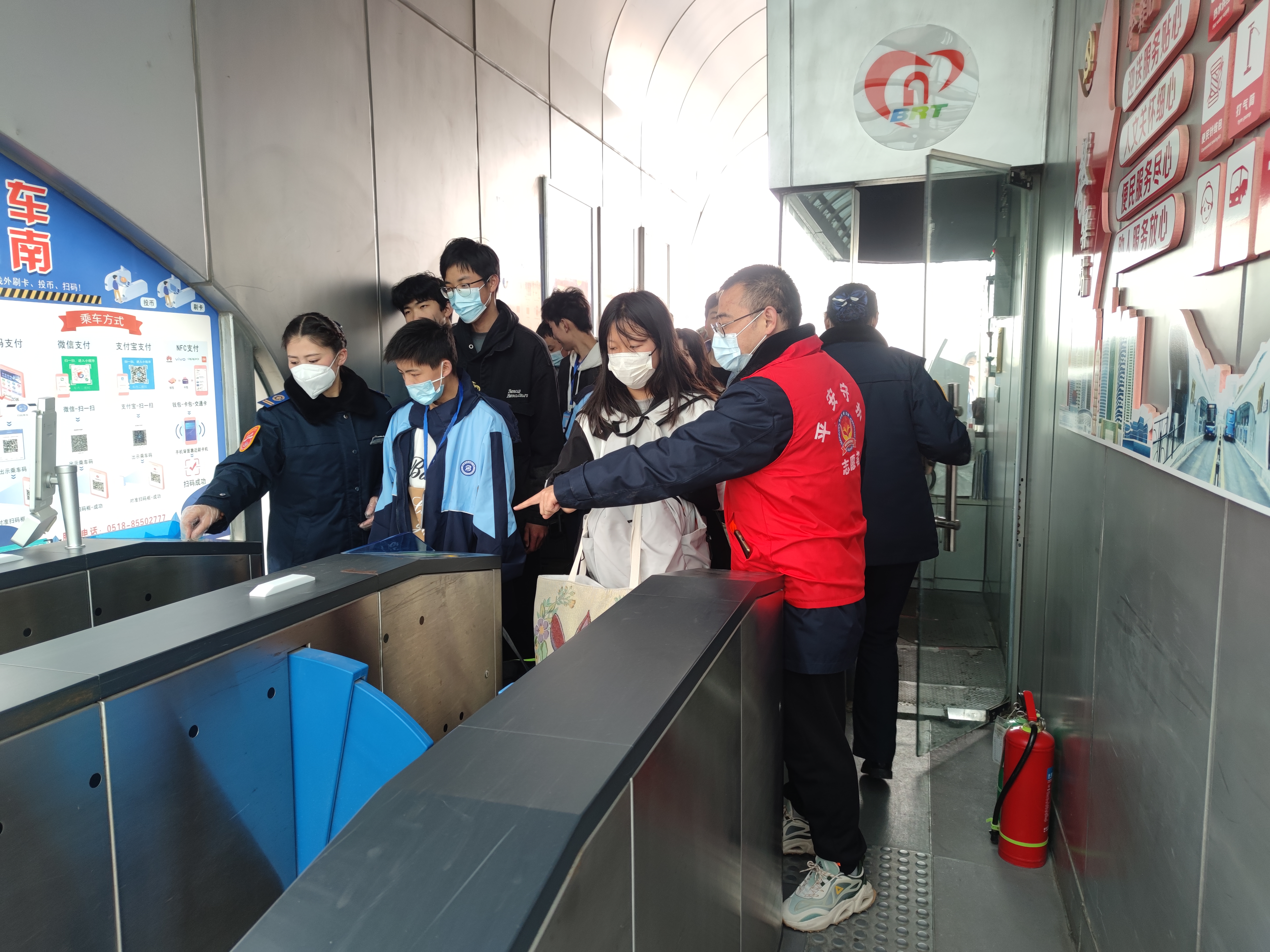 “请各位同学不要拥挤,排好队有序上车,注意脚下安全”。3月24日,公交千亿app最新版下载,千亿(中国)快速公交事业部公交志愿者吕辉一如既往的在站台疏导着放学回家的学生。