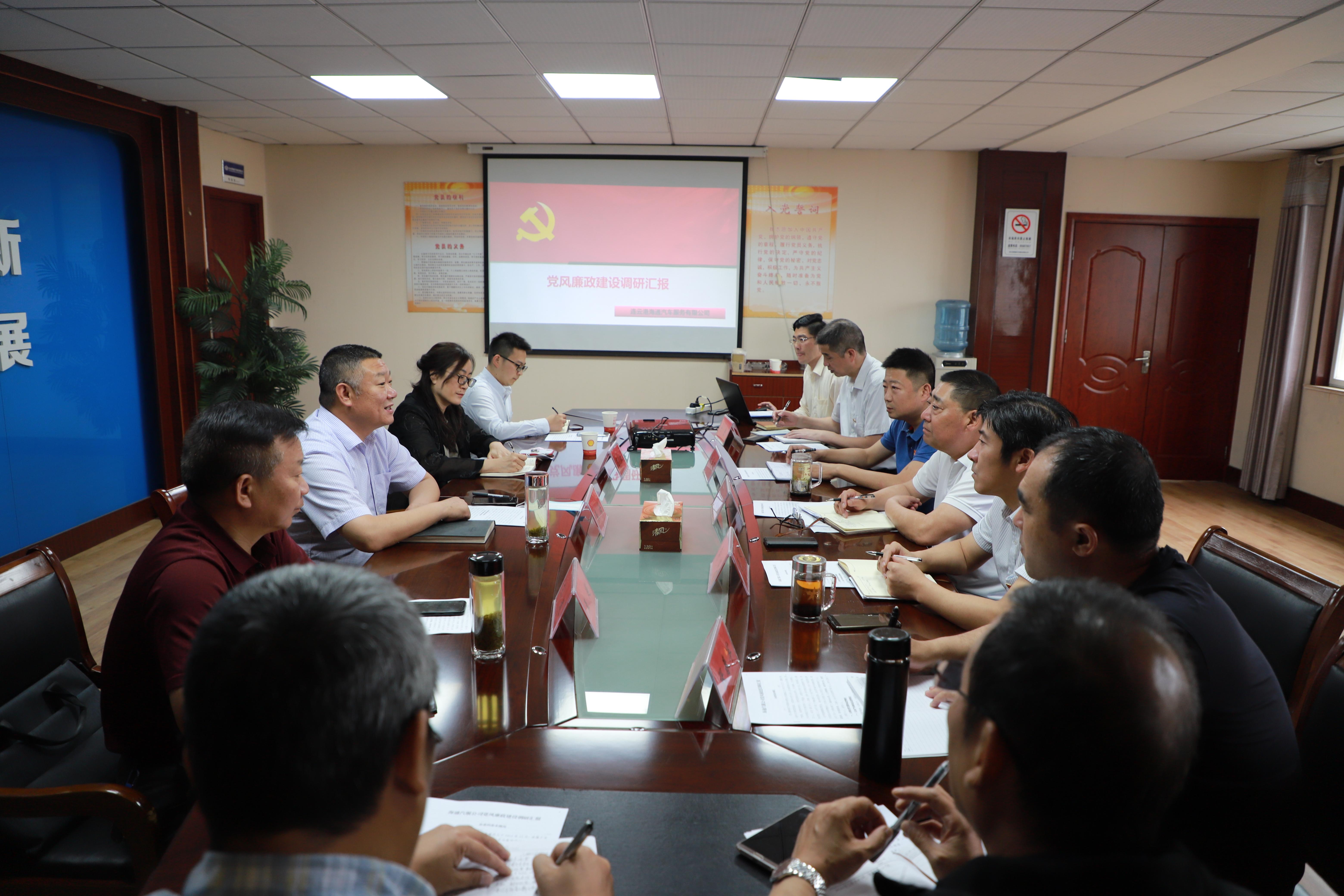 6月18日上午,市纪委监委派驻第二十一纪检监察组组长张海带领调研组一行4人,到汽服公司调研党风廉政建设工作,公司全体领导班子成员及相关部门负责人参加调研活动。