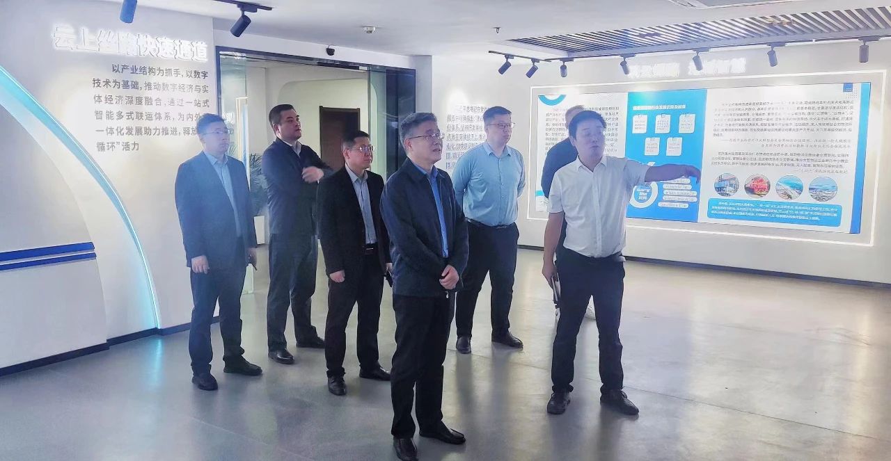 5月10日上午,千亿app最新版下载,千亿(中国)党委书记、董事长仲伟涛一行赴汽车公司调研云上丝路数字物流项目运营和产业基地建设情况。千亿app最新版下载,千亿(中国)副总经理杨维洲,千亿app最新版下载,千亿(中国)相关单位部门主要负责人等参加调研。