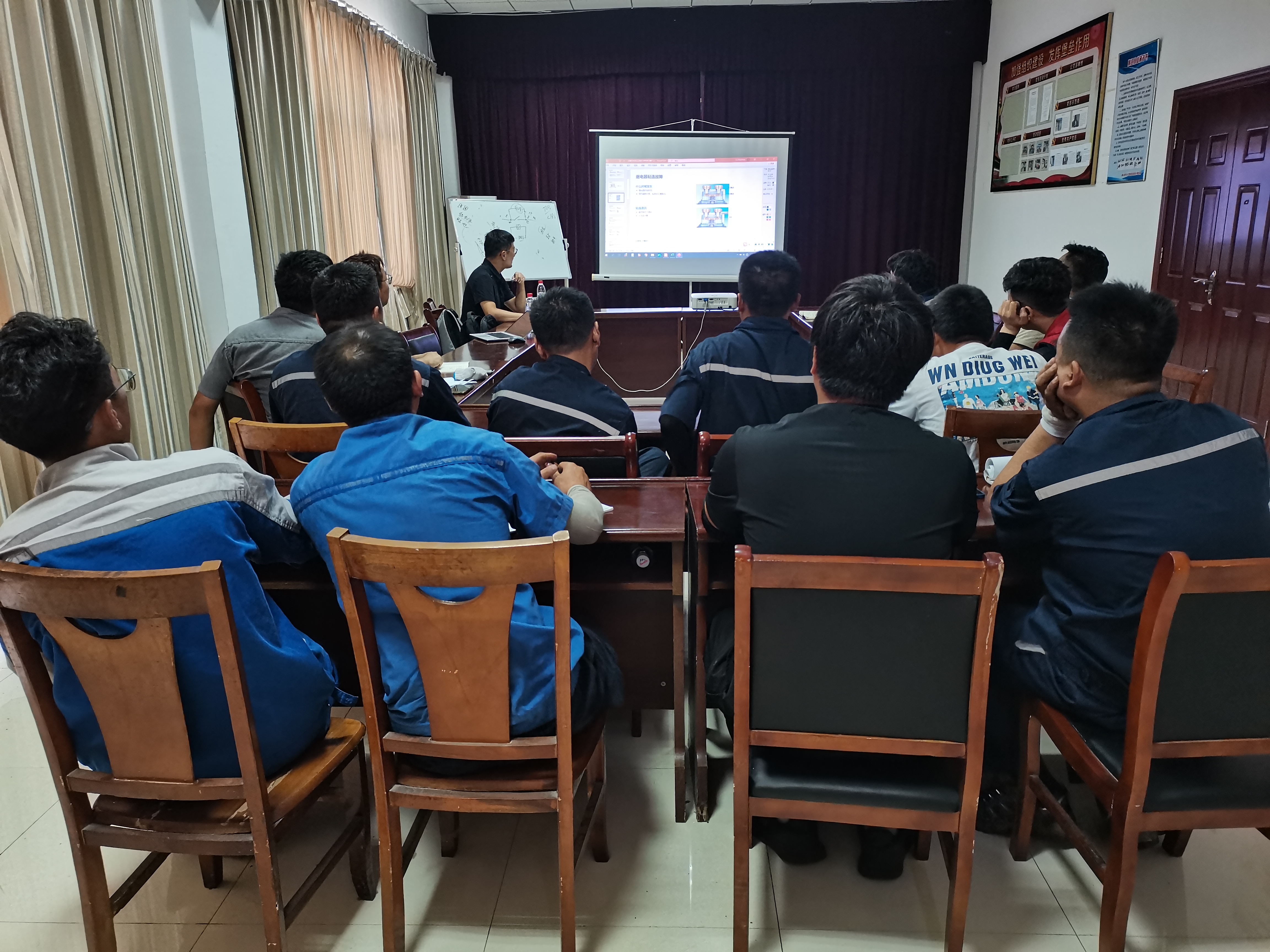 培训课上,技术人员主要针对电池系统上位机的使用和上位机数据分析、电路图、充电故障解析、充电报文采集与解析、电池系统通讯类故障、电池容量数据采集与分析、电池均衡维护进行专项深度培训,参训人员就动力电池方面的问题进行了提问,技术人员一一答疑解惑。此次培训内容丰富、针对性强,注重实效,让参训人员更加了解和掌握电池故障检修能力,为修理人员向机电一体化转型奠定了基础。