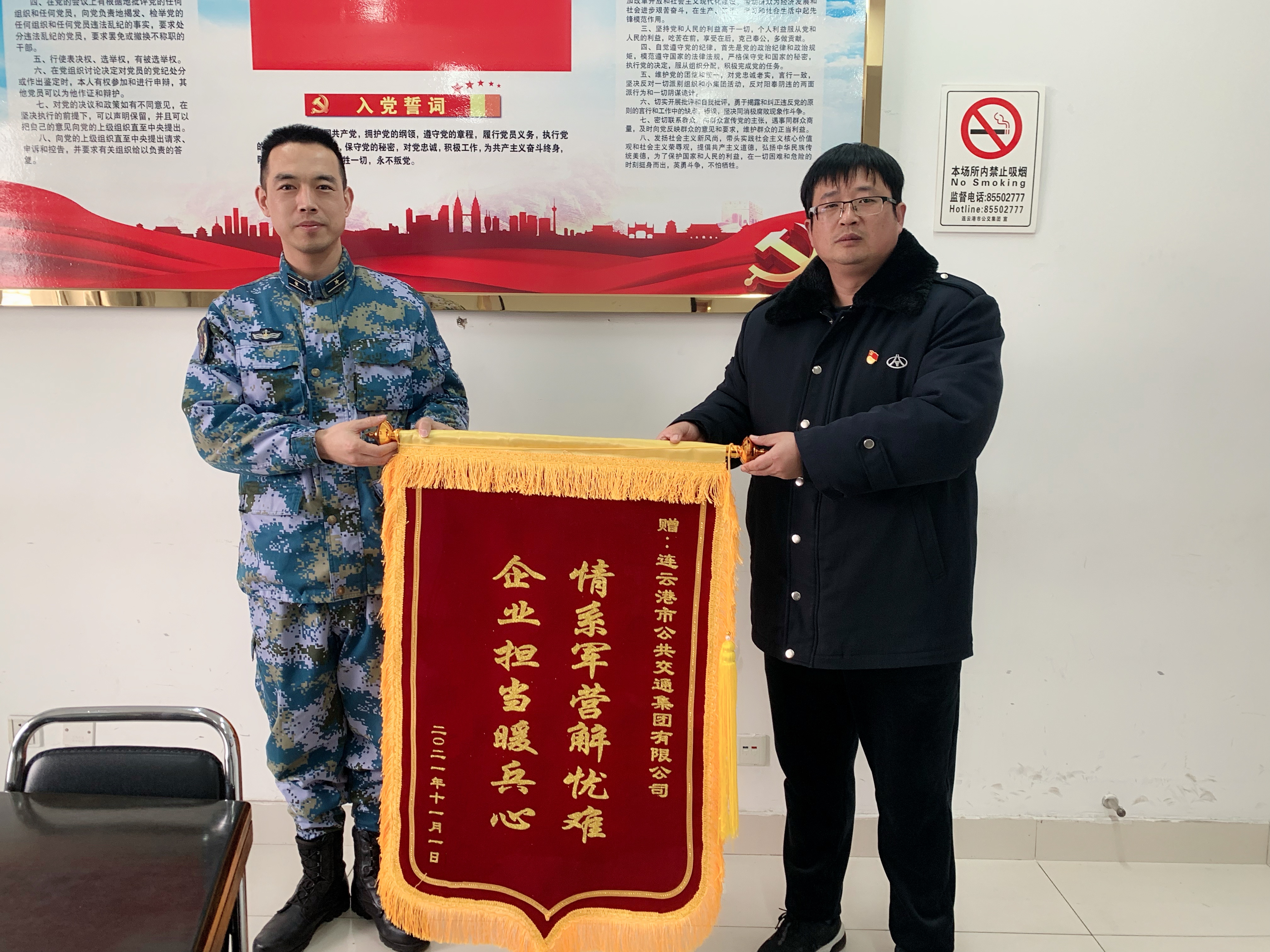 1月16日,解放军某部海军营区官兵代表特地赶到公交千亿app最新版下载,千亿(中国)公交事业二部,送来了一面写有“情系军营解忧难 企业担当暖兵心”的锦旗。